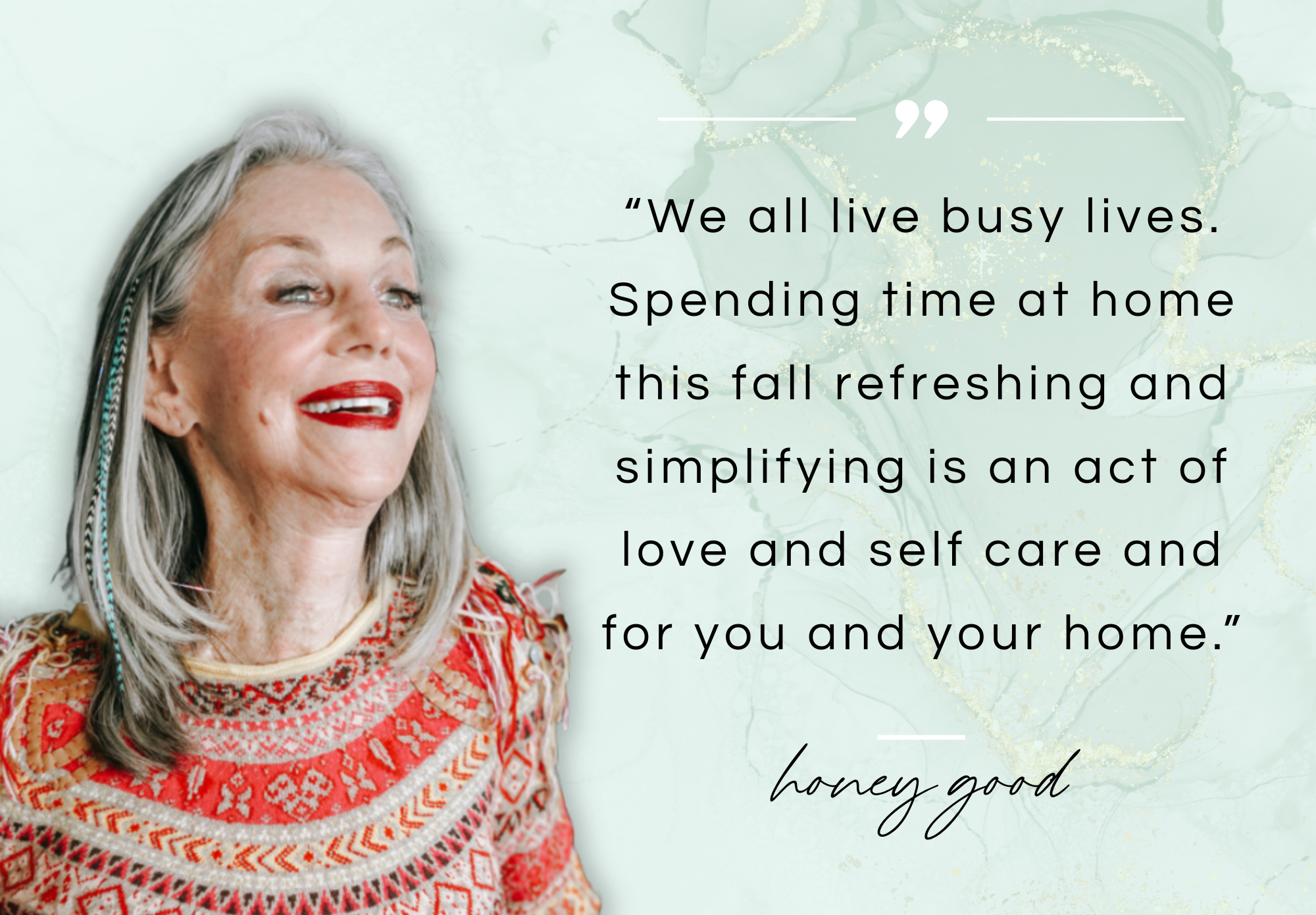 So, because the leaves flip and the air grows crisp, pour your self a cup of tea, gentle a candle, and let your house communicate again to you. Ask: What do I want extra of this season? What can I launch? Please write within the feedback or electronic mail me at AskMe@HoneyGood.com to share the way you’re refreshing your house this season! I learn each remark and electronic mail and personally reply from my coronary heart. 💛